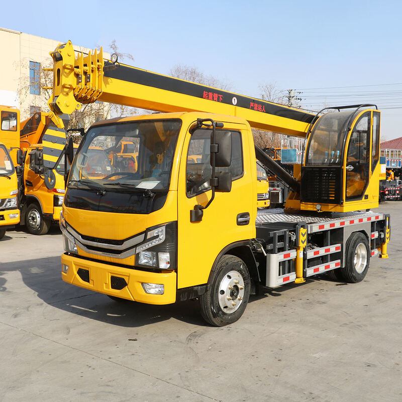 De voordelen zijn onder meer uitstekende mobiliteit, snelle verplaatsingsmogelijkheden en de combinatie van hef- en transportfuncties die de efficiëntie van het gebruik van hulpbronnen verbeteren.Het is ook aanzienlijk goedkoper dan mobiele kranenDe op de vrachtwagen gemonteerde kraan kan worden uitgerust met verschillende toebehoren, zoals houtgrepen, werkmandjes, bakstenenklemmen en boorequipment om multi-scenario-operaties uit te voeren.