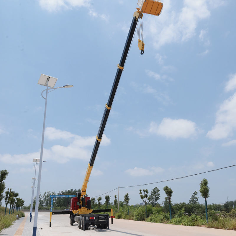 De voordelen van een op vrachtwagens gemonteerde kraan zijn onder meer goede manoeuvreerbaarheid, snelle overdracht en de mogelijkheid om hef- en transportfuncties te integreren, waardoor de benutting van hulpbronnen wordt verbeterd. Het nadeel is dat er steunpoten nodig zijn tijdens het werk en dat het niet geschikt is voor werk op steil, zacht of modderig terrein. De hefprestaties zijn niet zo goed als die van een mobiele kraan. De aan boord kraan kan diverse hulpwerktuigen laden, zoals houten grijpers, hangmanden, steenklemmen, enz., om operaties in meerdere scènes te realiseren.